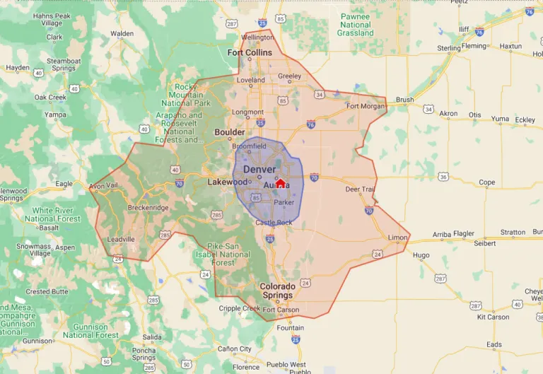 Service Areas for Mile High Lens LLC (16800 E Quincy Ave, Aurora, CO 80015)